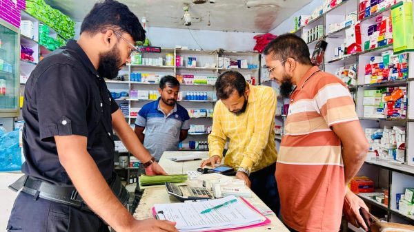 এসময় মেয়াদোত্তীর্ণ ওষুধ এবং বিনামূল্যের ফিজিশিয়ান স্যাম্পল বিক্রির দায়ে রেজা ফার্মাসিকে ৪ হাজার, ইশরাক ফার্মাসীকে ৩ হাজার ও সোহান ফার্মাসীকে ২ হাজার ৫’শত টাকা জরিমানা করা হয়েছে। এছাড়া মেয়াদোত্তীর্ণ খাদ্যপণ্য বিক্রির দায়ে মিঠুর মুদিখানা দোকানে ৩ হাজার টাকা এবং অস্বাস্থ্যকর পরিবেশে খাবার তৈরি ও পরিবেশনের দায়ে লিটন হোটেলকে ১ হাজার টাকা জরিমানা করা হয়েছে।