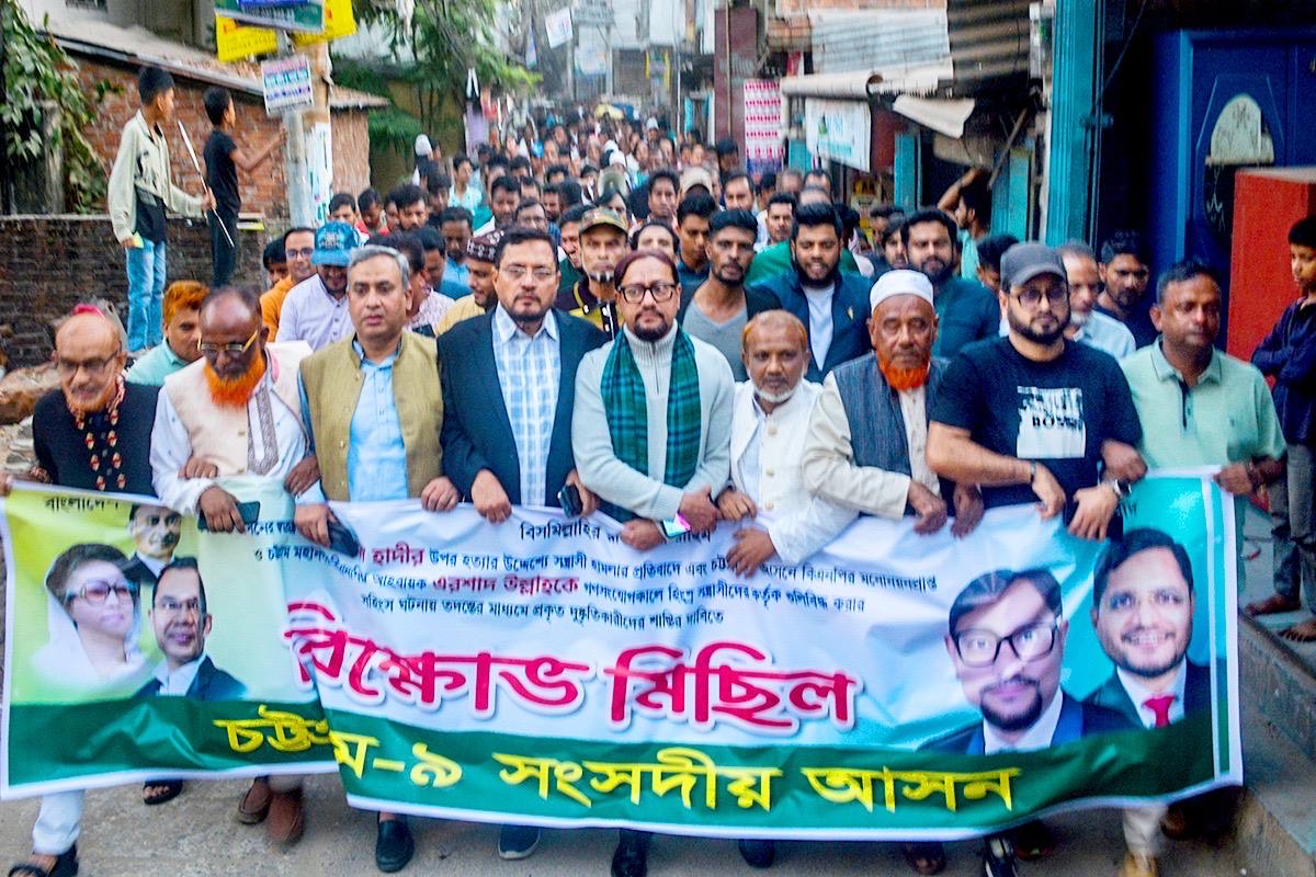 শনিবার (১৩ ডিসেম্বর) বিকেলে নগরীর চকবাজারের ধনীর পুল এলাকায় ঢাকায় ইনকিলাব মঞ্চের মুখপাত্র ওসমান হাদিকে গুলিবর্ষণের প্রতিবাদে ও চট্টগ্রাম ৮ আসনের বিএনপির প্রার্থী এরশাদ উল্লাহর নির্বাচনী প্রচারণায় গুলিবর্ষণকারীদের আইনের আওতায় আনার দাবিতে চট্টগ্রাম ৯ আসন বিএনপির বিক্ষোভ মিছিল ও সমাবেশে এসব কথা বলেন।