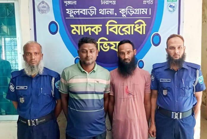 পুলিশ ও স্থানীয় সুত্র জানায়, বুধবার রাত ১১টার দিকে গোপন সংবাদের ভিত্তিতে ফুলবাড়ী থানার এস আই শাহানুর আলমের নেতৃত্বে চার সদস্যের একটি টিম উপজেলার বিলুপ্ত ছিটমহল দাসিয়ার ছড়ার খড়িয়াটারী এলাকার মাদক কারবারী জাহাঙ্গীর আলমের (৩৮) বাড়ীতে অভিযান চালায়। অভিযানের সময় জাহাঙ্গীরের বাড়ী থেকে ২৩৫ পিস ইয়াবা ট্যাবলেট উদ্ধার করে জাহাঙ্গীর ও তার বড় ভাই জামালকে হাতেনাতে আটক করে পুলিশ।