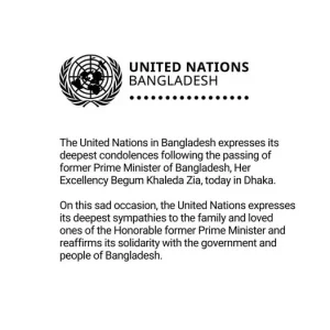 বাংলাদেশের প্রথম নারী প্রধানমন্ত্রী ও বিএনপি চেয়ারপারসন বেগম খালেদা জিয়ার মৃত্যুতে গভীর শোক প্রকাশ করেছে জাতিসংঘ।