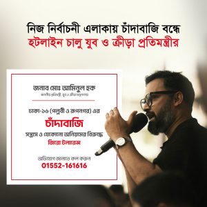 চাঁদাবাজি ও সন্ত্রাসের বিরুদ্ধে ‘জিরো টলারেন্স’ যুব ও ক্রীড়া প্রতিমন্ত্রীর: চালু হলো হটলাইন