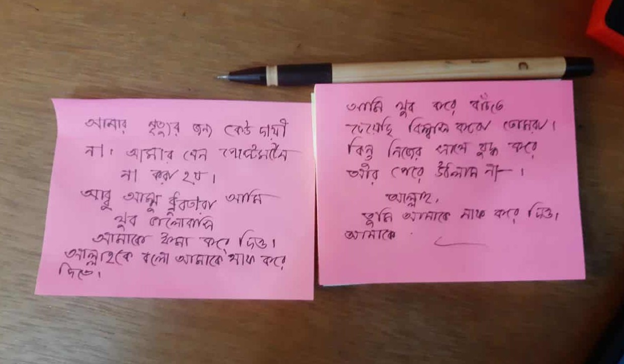 চিরকুটে “আমি খুব করে বাচঁতে চেয়েছি বিশ্বাস করো তোমরা” লিখে রাবি শিক্ষার্থীর আত্মহত্যা