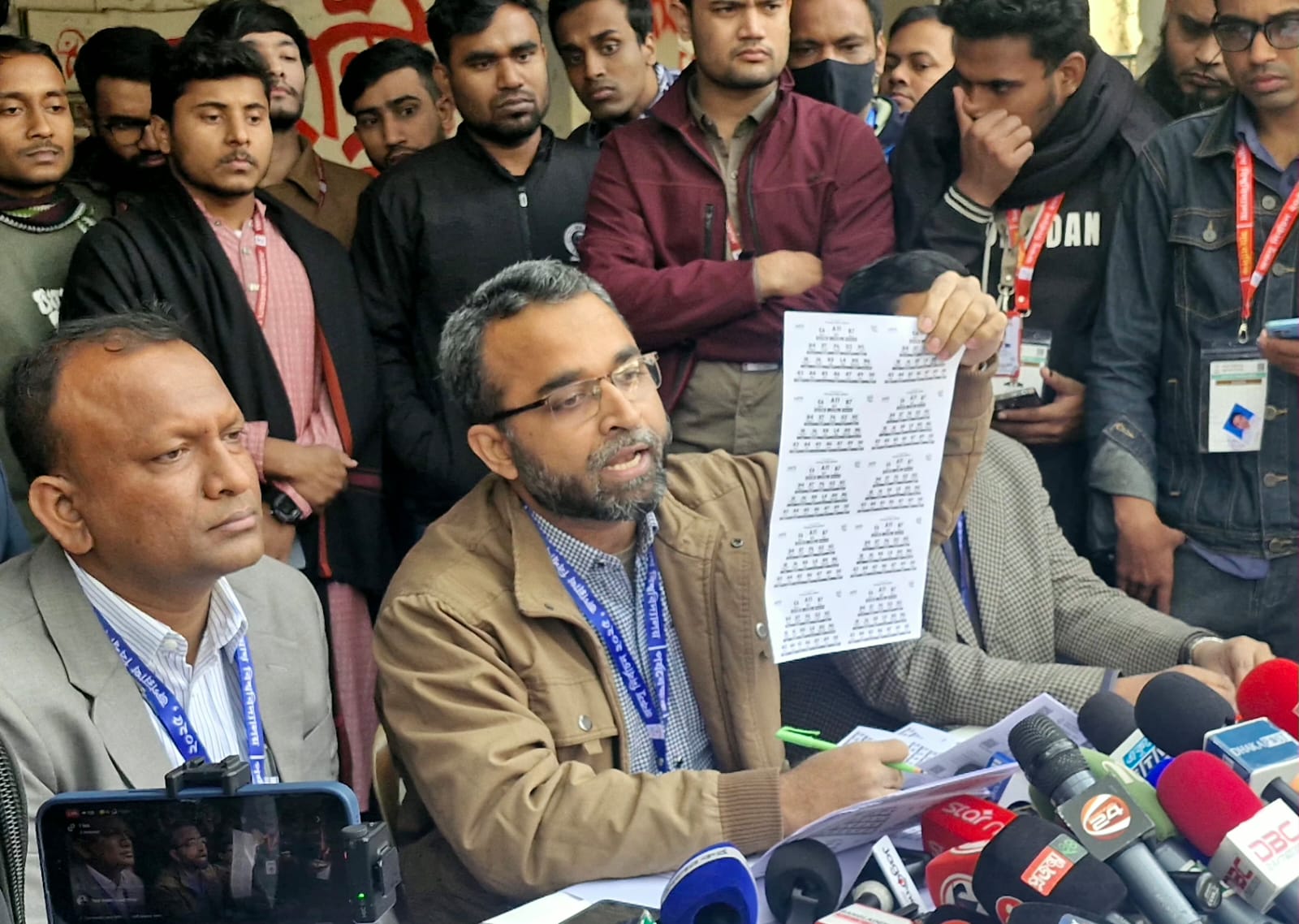 তিনি অভিযোগ করে বলেন, নির্দিষ্ট একটি দলের পুলিং এজেন্টদের হাতে এমন কিছু ভোটার স্লিপ পাওয়া গেছে, যেখানে শিক্ষার্থীদের ভোটার স্লিপের পেছনে ওই প্যানেলের পোস্টার প্রিন্ট করে বিতরণ করা হচ্ছে।