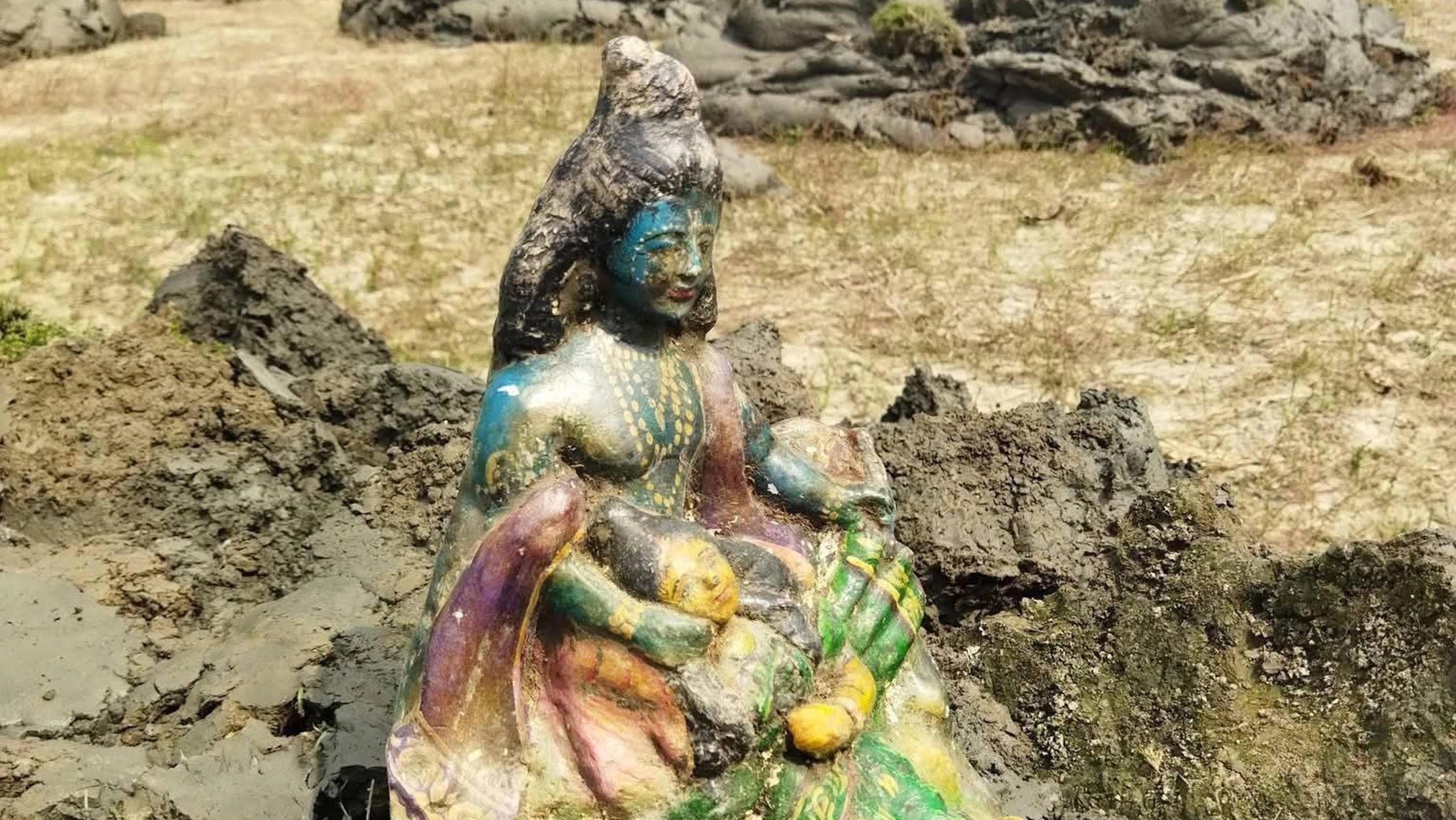 নওগাঁয় পুকুরে পাওয়া গেলো কষ্টি পাথর সাদৃশ রাধা গোবিন্দ মূর্তি