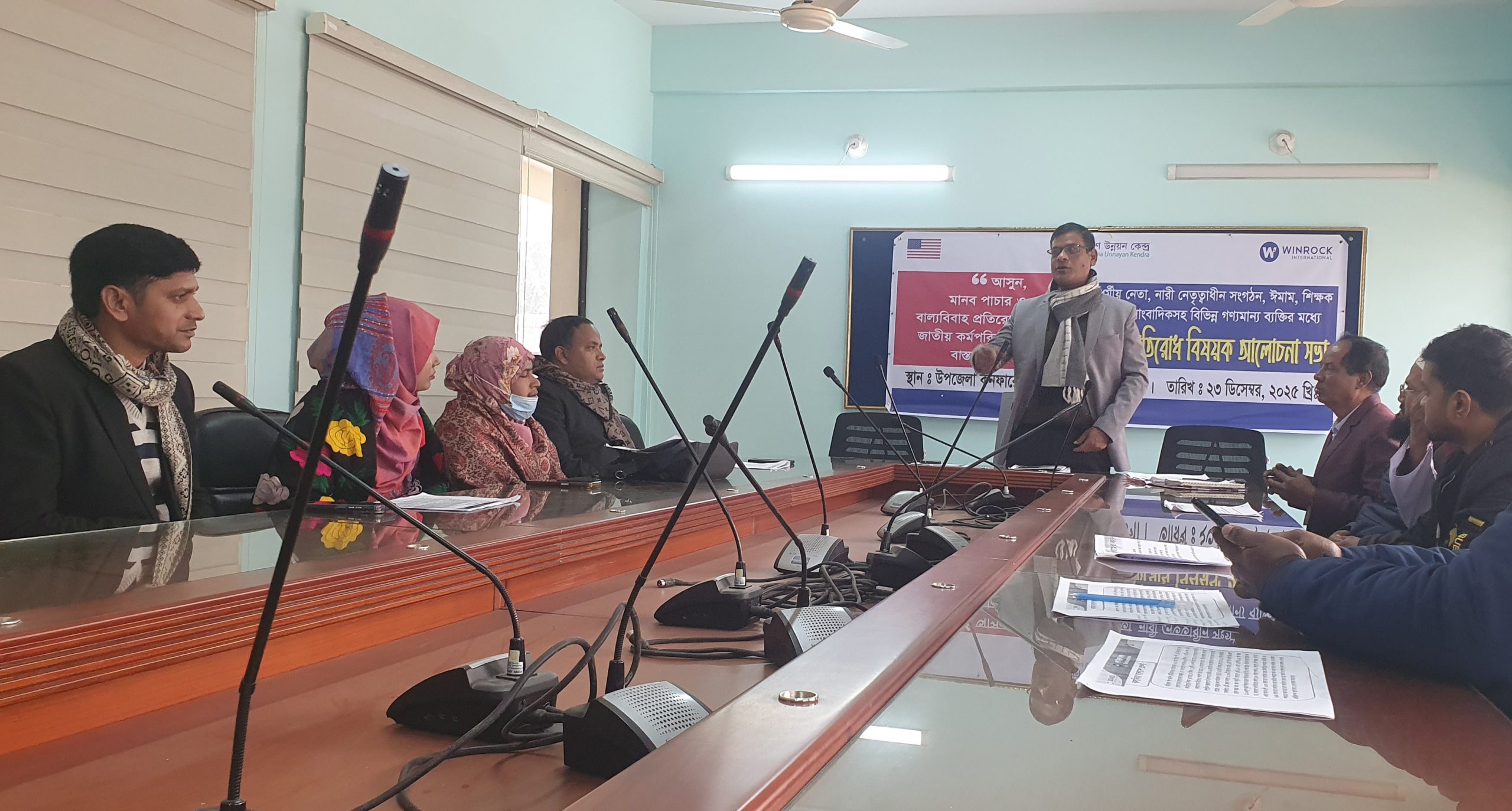 গণ উন্নয়ন কেন্দ্র এর আয়োজনে অনুষ্ঠিত আলোচনা সভায় স্থানীয় ধর্মীয় নেতা, নারী নেতৃত্বাধীন সংগঠনের সদস্য,ইমাম,শিক্ষক কাজী,বিভিন্ন গণমাধ্যমের সাংবাদিকসহ গণ্যমান্য ব্যক্তিবর্গ উপস্থিত ছিলেন।আলোচনা সভায় বাল্য বিবাহের কূফল ও প্রতিরোধের উপায় তুলে ধরে বক্তব্য রাখেন,উপজেলা সমাজসেবা অফিসার মোঃ রেজওয়ানুল হক,মহাদেবপুর কেন্দ্রীয় জামে মসজিদের ইমাম মোঃজিল্লুর রহমান,ইমাম মা’আরিফুল ইসলাম,খাজুর উচ্চ বিদ্যালয়ের প্রধান শিক্ষক মোঃ দেলোয়ার হোসেন, মহাদেবপুর মহিলা দলের সভাপতি ও সাবেক মহিলা ভাইস চেয়ারম্যান মর্জিনা আক্তার,কাজী আবুল বাসার, সাংবাদিক জুয়েল মন্ডল প্রমূখ। এ সময় গণ উন্নয়ণ কেন্দ্রের প্রজেক্ট অফিসার মো. হাবিবুর রহমান, কাজী শওকত ওসমান, আমিনুল ইসলাম,ইউসূফ আলী, ইউপি সদস্য রঞ্জনা বেগম,পিয়ার লাভার মুক্তা রাণী, জেন্ডার প্রমোটার অরুপ কুমার সরকার, সাংবাদিক মোঃ আইনুল হোসেন,সামসুল আলম উজ্জল,শিক্ষক সোহেল রানা প্রমূখ উপস্থিত ছিলেন।