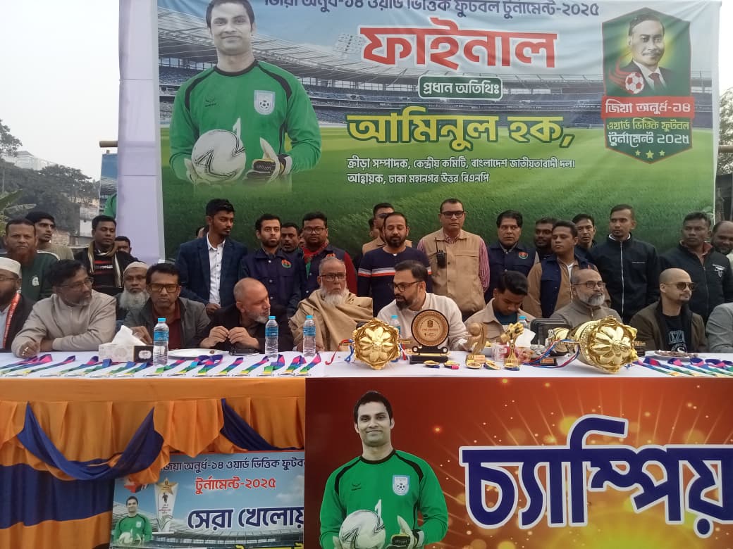 জিয়া অনূর্ধ্ব–১৪ ওয়ার্ডভিত্তিক ফুটবল টুর্নামেন্ট–২০২৫-এর ফাইনাল খেলা অনুষ্ঠিত হয়েছে রাজধানীর পল্লবীর আরামবাগ ঈদগাহ মাঠে। শনিবার (১০ ডিসেম্বর) বিকেলে অনুষ্ঠিত ফাইনালে গোল্ডেন ফিউচার ক্লাবকে ১–০ গোলে হারিয়ে চ্যাম্পিয়ন হয় রূপনগর বয়েজ ক্লাব।
