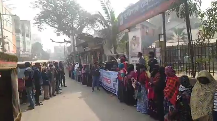 শনিবার সকাল ১১টায় মুন্সীগঞ্জ প্রেসক্লাবের সামনে স্থানীয় এলাকাবাসীর ব্যানারে এ কর্মসূচি পালিত হয়। মানববন্ধনে প্রায় দেড় শতাধিক নারী-পুরুষ অংশ নেন।