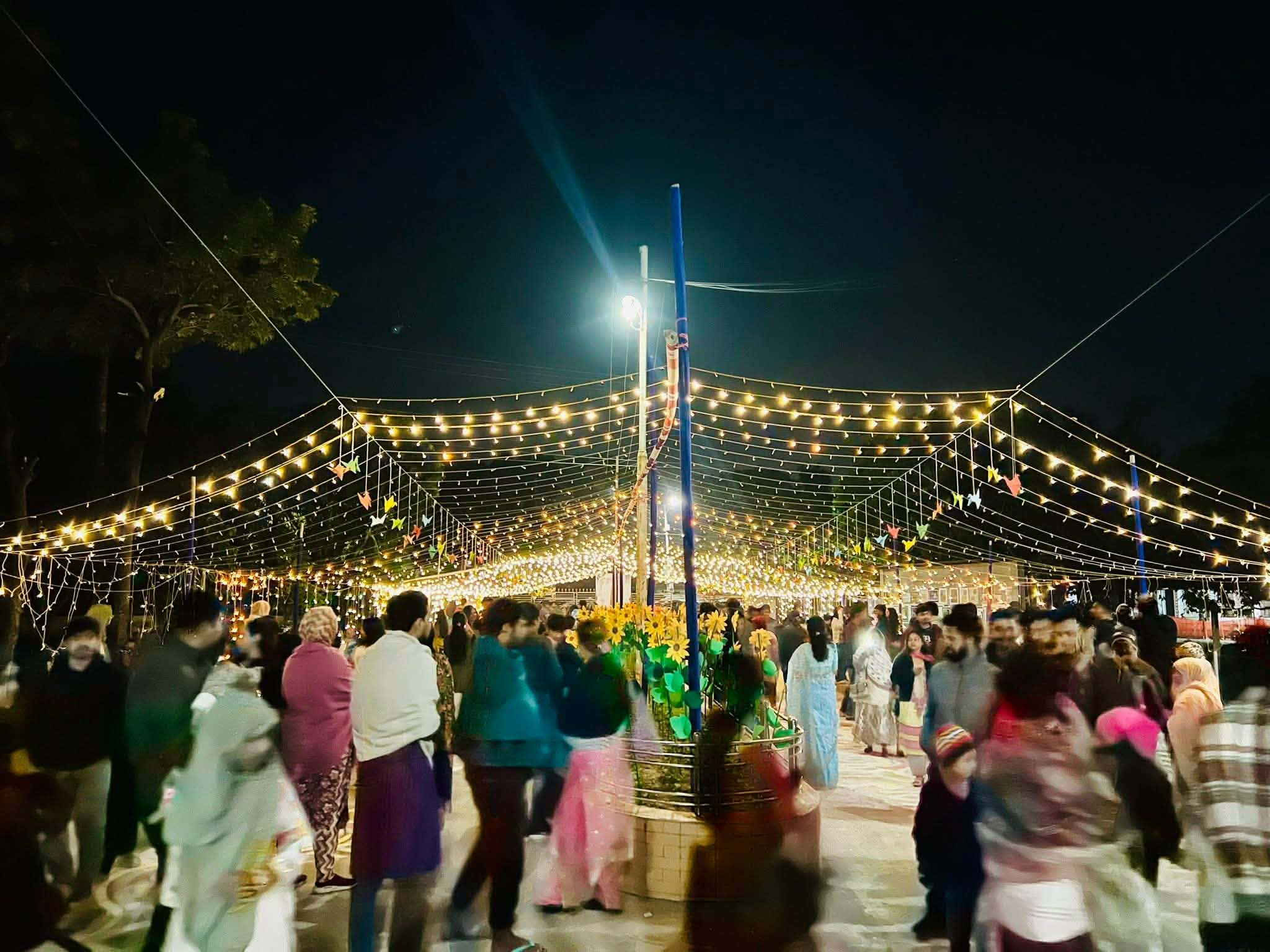 এ ছাড়া পুরো প্রাঙ্গণ সেজে উঠেছিল শিল্পের স্বর্গভূমিতে—যেখানে শিল্পীর নিপুণ হাতে মঞ্চসজ্জা, রাস্তার আলপনা, পুকুর সজ্জা, দেয়ালচিত্র, রঙিন মাটির হাঁড়ি, ঝলমলে বাতি, কাগজের পাখিসহ নানা কিছু দিয়ে সাজানো হয়েছিল পুরো প্রাঙ্গণ। নাচ-গান তো ছিলই, আরও ছিল পিঠার আয়োজন। শীতের পিঠার একটি স্টলেও ভিড় লেগে ছিল সারাবেলা। রাতের সাংস্কৃতিক অনুষ্ঠানে হাজির হয়েছিলেন আশপাশের শত শত মানুষ।