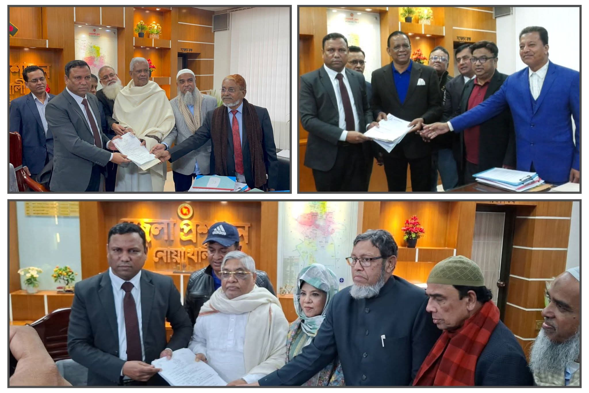 শফিকুল ইসলামের কাছে মনোনয়নপত্র জমা দেন বিভিন্ন দলের প্রার্থীরা।নোয়াখালী-১ আসন থেকে বিএনপি ধানের শীষে পক্ষে মনোনয়নপত্র দাখিল করেন সুপ্রিম কোর্টের আইনজীবী সমিতির সভাপতি ব্যারিস্টার মাহবুব উদ্দিন খোকন,নোয়াখালী-৩ আসন থেকে মনোনয়নপত্র দাখিল করেন বিএনপির ভাইস চেয়ারম্যান বরকত উল্লাহ বুলু,নোয়াখালী-৪ আসন থেকে মনোনয়নপত্র দাখিল করেনবিএনপির ভাইস চেয়ারম্যান মোহাম্মদ শাহজাহানসহ বিভিন্ন দলের প্রার্থীরা।এ সময় উপস্থিত ছিলেন নোয়াখালী জেলা বিএনপির আহ্বায়ক মাহবুব আলমগীর আলো,সদস্য সচিব হারুনুর রশিদ আজাদসহ কেন্দ্রীয় ও জেলা বিএনপির অঙ্গ সহযোগী সংগঠনের নেতাকর্মীরা।রিটার্নিং কর্মকর্তা ও জেলা প্রশাসক মুহাম্মদ শফিকুল ইসলাম জানান,সকাল থেকে বেলা ৪টা পর্যন্ত তাঁর কার্যালয়ে অনেক প্রার্থীই মনোনয়নপত্র জমা দিয়েছেন। উপজেলা পর্যায়েও মনোনয়নপত্র জমা নেওয়া হচ্ছে। বিকেল পাঁচটা পর্যন্ত মনোনয়ন ফরম জমা নেওয়া হবে। প্রার্থী হওয়ার জন্য মনোনয়নপত্র সংগ্রহ করেছেন ৮৭ জন প্রার্থী।