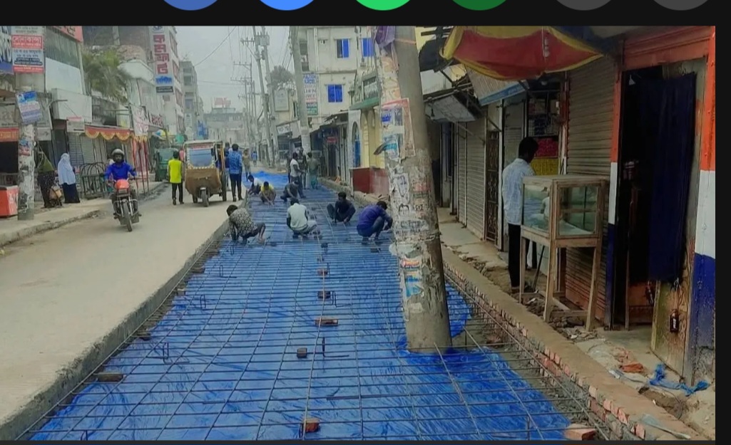 সড়কে বিদ্যুতের খুঁটি রেখেই ঢালাইয়ের প্রস্তুতি