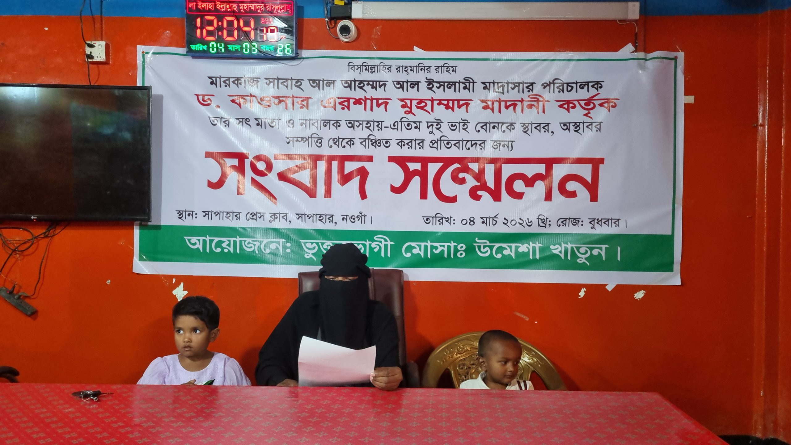 বুধবার (৪ মার্চ) দুপুরে সাপাহার প্রেস ক্লাব-এ আয়োজিত সংবাদ সম্মেলনে লিখিত বক্তব্য পাঠ করেন উপজেলার কৈবর্ত্তগ্রামের মৃত এরশাদ আলীর দ্বিতীয় স্ত্রী মোছা. উমেশা খাতুন।