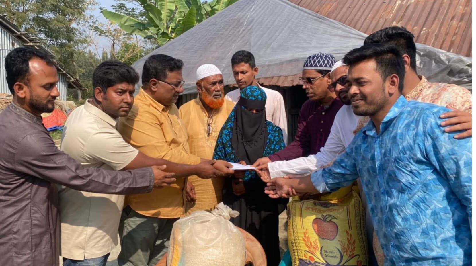 শনিবার (২৮ ফেব্রুয়ারি) বিকালে আয়েশা বেগমের সঙ্গে মুঠোফোনে কথা বলেন নাছির উদ্দীন নাছির।এ সময় তিনি পরিবারের সার্বিক খোঁজখবর নেন এবং শিগগিরই একটি নিরাপদ ঘর নির্মাণে সহযোগিতার প্রতিশ্রুতি দেন। পরে তার পক্ষ থেকে স্থানীয় বিএনপি ও অঙ্গসংগঠনের নেতাকর্মীরা আয়েশা বেগমের বাড়িতে গিয়ে নগদ অর্থ ও এক মাসের প্রয়োজনীয় খাদ্যসামগ্রী পৌঁছে দেন।জানা যায়, প্রায় দুই বছর আগে দুর্ঘটনায় স্বামীকে হারানোর পর তিন সন্তানকে নিয়ে চরম অনিশ্চয়তার মধ্যে দিন কাটাচ্ছিলেন আয়েশা বেগম। পরিবারের উপার্জনক্ষম কেউ না থাকায় অনেক সময় না খেয়েই দিন পার করতে হয়েছে তাদের।বিষয়টি বিভিন্ন গণমাধ্যমে প্রকাশিত হলে স্থানীয়ভাবে আলোচনার সৃষ্টি হয় এবং সামাজিক যোগাযোগমাধ্যমে ছড়িয়ে পড়ে বিভিন্ন মহলের দৃষ্টি আকর্ষণ করে।খবরটি নজরে আসার পর মানবিক দৃষ্টিকোণ থেকে দ্রুত উদ্যোগ নেন ছাত্রদলের সাধারণ সম্পাদক নাছির উদ্দীন নাছির। তিনি বলেন, সমাজের অসহায় ও সুবিধাবঞ্চিত মানুষের পাশে দাঁড়ানো সবার নৈতিক দায়িত্ব। আয়েশা বেগমের পরিবারের জন্য একটি নিরাপদ বাসস্থান নিশ্চিত করতে আমি ব্যক্তিগতভাবে সহযোগিতা করবো এবং ভবিষ্যতেও প্রয়োজনীয় সহায়তা অব্যাহত রাখবো।তিনি আরও বলেন, আয়েশা বেগম মানবেতর জীবনযাপন করায় দ্রুত খাদ্যসামগ্রী ও নগদ অর্থ সহায়তা দেওয়া হয়েছে। স্থানীয় বিএনপির নেতাকর্মীদের সঙ্গে আলোচনা করে ঈদের আগেই ঘর নির্মাণের বিষয়ে প্রয়োজনীয় পদক্ষেপ নেওয়া হবে। বিধবা আয়েশা বেগম আর একা নন তার পাশে বিএনপি, যুবদল ও ছাত্রদল রয়েছে।