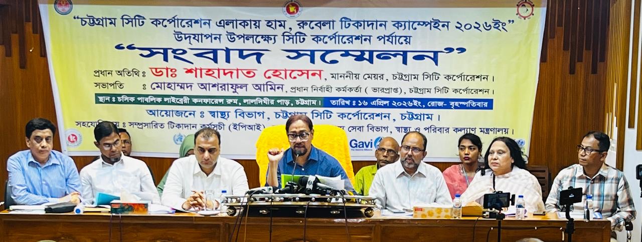 চট্টগ্রাম সিটি কর্পোরেশন (চসিক) এলাকায় ৩ লাখেরও বেশি শিশুকে হাম-রুবেলা টিকার আওতায় আনার লক্ষ্যে আগামী ২০ এপ্রিল থেকে ২০ মে ২০২৬ পর্যন্ত মাসব্যাপী টিকাদান ক্যাম্পেইন পরিচালনা করা হবে বলে জানিয়েছেন চসিক মেয়র ডা. শাহাদাত হোসেন।