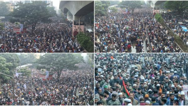 বিএনপির চেয়ারপারসন ও সাবেক প্রধানমন্ত্রী খালেদা জিয়ার জানাজায় অংশ নিতে আসা মানুষের ঢলে জাতীয় সংসদ, মানিক মিয়া অ্যাভিনিউ ও এর আশপাশের এলাকা জনসমুদ্রে পরিণত হয়েছে। বুধবার (৩১ ডিসেম্বর) দুপুর আড়াইটার