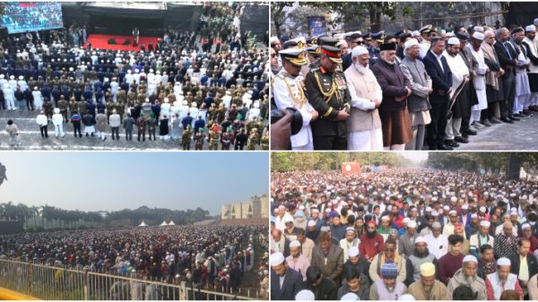 তিনবারের সাবেক প্রধানমন্ত্রী, গণতান্ত্রিক আন্দোলনের আপোসহীন নেত্রী এবং বিএনপি চেয়ারপারসন খালেদা জিয়ার জানাজা সম্পন্ন হয়েছে। বুধবার (৩১ ডিসেম্বর) বিকেল ৩টার দিকে রাজধানীর মানিক মিয়া অ্যাভিনিউতে এ জানাজা সম্পন্ন হয়। জানাজার
