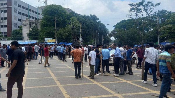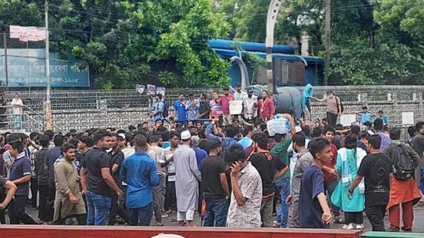 রাত ১০টা, রাজধানী ঢাকার রাজারবাগ পুলিশ লাইন মোড়ে লাঠি হাতে সড়কে দাঁড়িয়ে কয়েকজন শিক্ষার্থী। হঠাৎ এক যুবক গাড়ি থামিয়ে অন্য সড়কের গাড়ি হাতের ইশারায় ছেড়ে দিলেন। দেখে মনে হলো ট্রাফিক