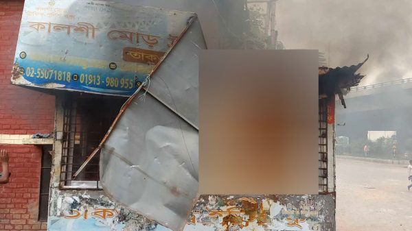 কালশীতে অটোরিকশা চালকরা পুলিশ বক্সে আগুন দিল