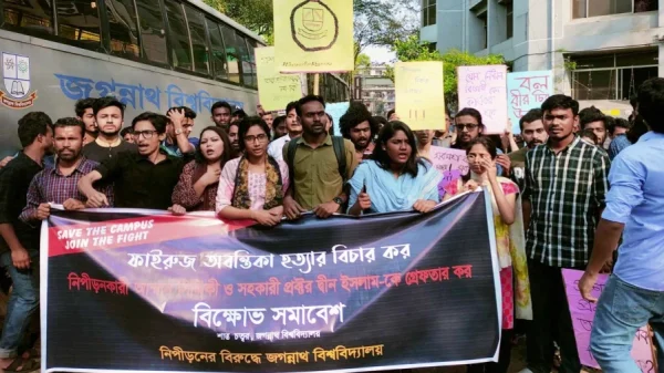 জগন্নাথ বিশ্ববিদ্যালয়ের (জবি) আইন বিভাগের শিক্ষার্থী ফাইরুজ অবন্তিকার আত্মহত্যার ঘটনায় বিক্ষোভ করছেন সাধারণ শিক্ষার্থীরা। ছয় দফা দাবি জানিয়ে বিশ্ববিদ্যালয় প্রশাসনকে ১২ ঘণ্টার আল্টিমেটাম দিয়েছেন তারা। অবন্তিকার আত্মহত্যার ঘটনায় শনিবার (১৬