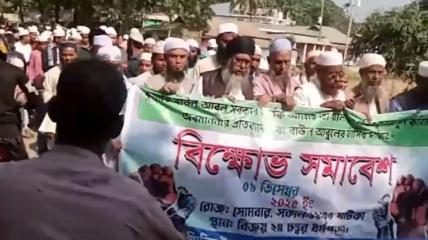 সুনামগঞ্জের ধর্মপাশা উপজেলা সদরের বিজয় ২৪ চত্বরে কুখ্যাত বাউল আবুল সরকার কর্তৃক আল্লাহ তায়ালা ও পবিত্র কুরআনুল কারিমের অবমাননার প্রতিবাদে এবং বাউল আবুলের ফাঁসির দাবিতে, ধর্মপাশা সম্মিলিত উলামা পরিষদ ও