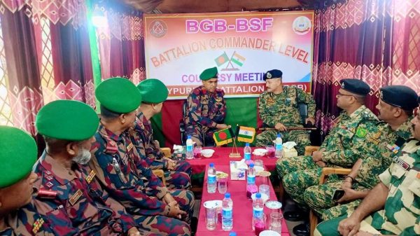 দিনাজপুরের হিলি সীমান্তে বর্ডার গার্ড বাংলাদেশ (বিজিবি) এবং ভারতীয় সীমান্তরক্ষী বাহিনীর (বিএসএফ) মধ্যে ব্যাটালিয়ন পর্যায়ে একটি সৌজন্য সাক্ষাৎ ও দ্বিপাক্ষিক বৈঠক অনুষ্ঠিত হয়েছে। আজ সোমবার হিলি চেকপোস্ট গেটের শূন্যরেখায়