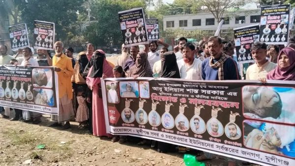 মুন্সীগঞ্জে সদর উপজেলা যুবদলের আহ্বায়ক আবু ইলিয়াস শান্ত হত্যা মামলার আসামীদের গ্রেপ্তার ও বিচারের দাবিতে মানববন্ধন ও বিক্ষোভ করেছে পরিবার ও গ্রামবাসী। বৃহস্পতিবার সকাল ১০টা থেকে বেলা ১১টা পর্যন্ত মুন্সীগঞ্জ