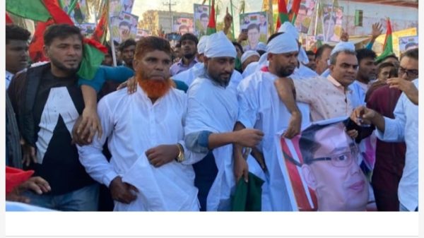 বিএনপির প্রার্থী পরিবর্তনের দাবিতে কাফনের কাপড় পরে মিছিল