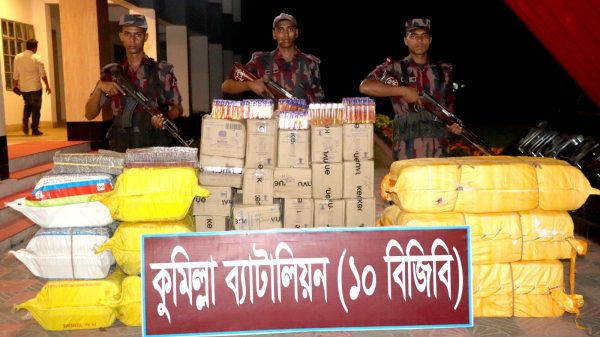কুমিল্লায় ব্যাটালিয়ন ১০ বিজিবি’র অভিযানে ৪৭লক্ষ ৫০ হাজার টাকা মুল্যের ভারতীয় বাজি ও প্রসাধনীসহ একটি যানবাহন উদ্ধার