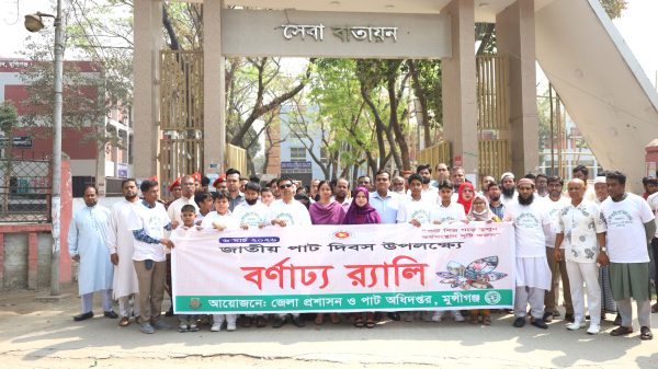 মুন্সীগঞ্জে জাতীয় পাট দিবস উপলক্ষে র্যালি ও আলোচনা সভা অনুষ্ঠিত হয়েছে। শুক্রবার জেলা প্রশাসন, মুন্সীগঞ্জ ও পাট অধিদপ্তরের উদ্যোগে এক বর্ণাঢ্য র্যালি ও জেলা প্রশাসকের সম্মেলন কক্ষে এক আলোচনা সভা