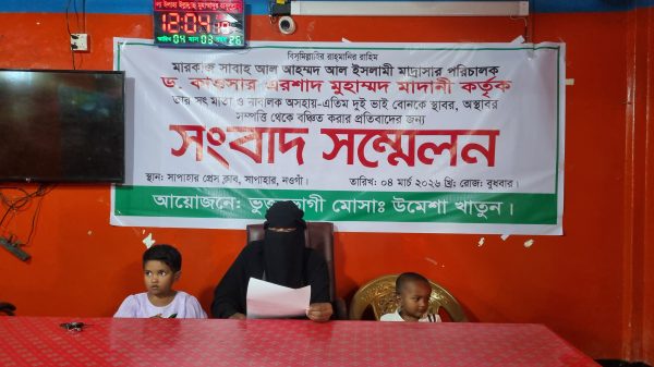 নওগাঁর সাপাহার উপজেলায় মৃত স্বামীর রেখে যাওয়া স্থাবর-অস্থাবর সম্পত্তি থেকে বঞ্চিত করার অভিযোগ তুলে ন্যায্য পাওনা আদায়ের দাবিতে সংবাদ সম্মেলন করেছেন এক ভুক্তভোগী নারী। বুধবার (৪ মার্চ) দুপুরে সাপাহার প্রেস