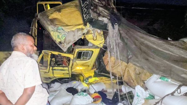 বিরামপুরে ট্রেনের ধাক্কায় দুমড়েমুচড়ে গেল ট্রাক আহত চালক