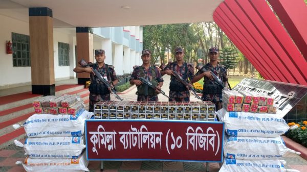 কুমিল্লায় বিজিবি’র অভিযানে ১ কোটি ৮ লক্ষ মুল্যের ভারতীয় মোবাইল ডিসপ্লে ও বাজি উদ্ধার