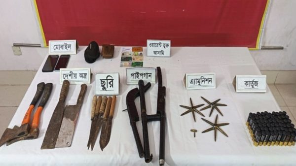 কুমিল্লায় যৌথবাহিনীর অভিযানে বিপুল পরিমাণ অবৈধ অস্ত্র, গোলাবারুদ ও অপরাধমূলক সরঞ্জামসহ চিহ্নিত সন্ত্রাসী মো. নজমুল ইসলাম শামীমকে আটক করা হয়েছে। বাংলাদেশ সেনাবাহিনীর ২৩ বীর ও র্যাব-১১ (সিপিসি-২)-এর সদস্যরা শনিবার (২০