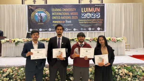 লিডিং ইউনিভার্সিটি ইন্টারন্যাশনাল মডেল ইউনাইটেড নেশনস ২০২৫-এ অংশগ্রহণ করে জাতীয় পর্যায়ে অসামান্য সাফল্য অর্জন করেছে কুমিল্লা বিশ্ববিদ্যালয়ের (কুবি) প্রতিনিধি দল। গত ১৮-২০ ডিসেম্বর লিডিং ইউনিভার্সিটিতে অনুষ্ঠিত এই প্রতিযোগিতায় বিশ্ববিদ্যালয়ের একাধিক