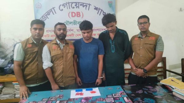 মৌলভীবাজার জেলা গোয়েন্দা শাখার (ডিবি) বিশেষ অভিযানে ২৫০ পিস ইয়াবাসহ জাকির আলী চৌধুরী (৩৩) এবং আবু তালহা (২৮) নামে দুইজনকে আটক করা হয়েছে। শুক্রবার (২১ই জুন) রাতে সদর উপজেলার পাহাড়