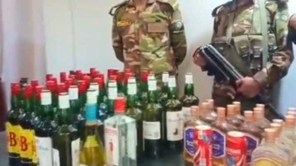 মৌলভীবাজারের শ্রীমঙ্গল উপজেলার সদর ইউনিয়নের উত্তরসুর এলাকায় “শ্রীমঙ্গল ক্লাবে” বিপুল পরিমাণ অবৈধ বিদেশী ব্রান্ডের মদ জব্দ করেছে বাংলাদেশ সেনাবাহিনীর সদস্যরা। বৃহস্পতিবার (১৫ইআগষ্ট) রাতে ওই এলাকায় সেনাবাহিনীর মেজর মেজবা ও ইমরান