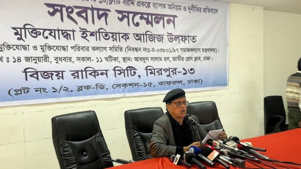 ভূমিহীন, বেকার ও অসচ্ছল মুক্তিযোদ্ধাদের আবাসন প্রকল্প ‘বিজয় রাকিন সিটির’ প্লট-ফ্ল্যাট বরাদ্দের নামে লুটপাট করা হয়েছে বলে অভিযোগ করেছেন মুক্তিযোদ্ধা ও মুক্তিযোদ্ধা পরিবার কল্যাণ সমিতির প্রশাসক ইশতিয়াক আজিজ উলফাত। তিনি