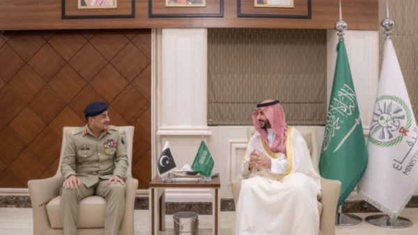 সৌদি প্রতিরক্ষামন্ত্রী প্রিন্স খালিদ বিন সালমান রিয়াদে পাকিস্তানের সশস্ত্র বাহিনীর প্রধান ফিল্ড মার্শাল আসিম মুনিরের সঙ্গে জরুরি বৈঠক করেছেন। সম্প্রতি সৌদি আরবের ওপর ইরানি হামলা এবং ক্রমবর্ধমান পরিস্থিতি মোকাবিলার উপায়