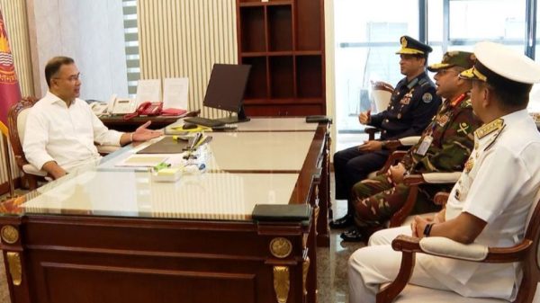প্রধানমন্ত্রী তারেক রহমানের সঙ্গে সৌজন্য সাক্ষাৎ করেছেন তিন বাহিনীর প্রধানরা। বৃহস্পতিবার (১৯ ফেব্রুয়ারি) সকালে এ সাক্ষাৎকার অনুষ্ঠিত হয়। এর আগে সকালে এনএসআই ও ডিজিএফআইয়ের মহাপরিচালকের সঙ্গে পৃথকভাবে বৈঠক করেছেন তিনি।