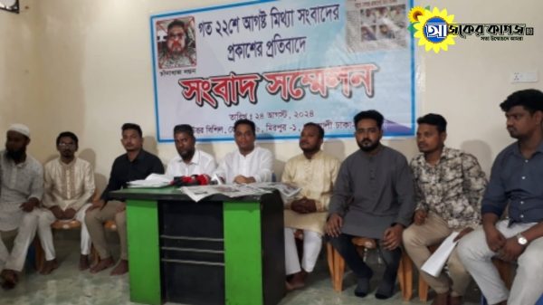 রাজধানী মিরপুর শাহ্আলী থানা ছাত্রদলের উদ্দ্যেগে প্রকাশিত সংবাদের প্রতিবাদে সংবাদ সম্মেলন করেছেন ছাত্রদলের নেতা কর্মী ও ভোক্তাভোগী সুলতান বানিজ্য ভান্ডারের সত্তাধিকারী মো: সুলতান হোসেন বেপারী। শনিবার ২৪ আগস্ট সকাল ১২