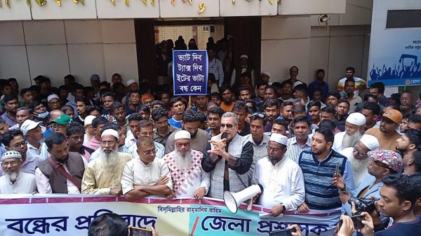 নওগাঁ জেলা প্রতিনিধিঃ বৈধ কাগজপত্রধারী ইটভাটা চালু রাখার দাবিতে নওগাঁয় বিক্ষোভ সমাবেশ ও মানববন্ধন কর্মসূচি পালন করেছেন ইটভাটার মালিক ও শ্রমিকেরা।১৬ নভেম্বর রোববার দুপুরে নওগাঁ জেলা ইট প্রস্তুতকারক মালিক সমিতির