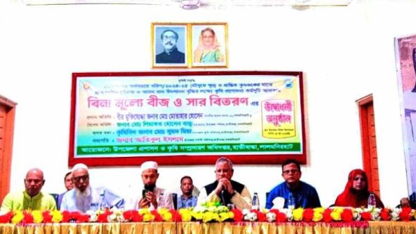 লালমনিরহাটের হাতীবান্ধায় কৃষি প্রনোদনা কর্মসূচীর আওতায় ক্ষুদ্র ও প্রান্তিক কৃষকদের মাঝে বিনামূল্যে বীজ ও সার বিতরণ অনুষ্ঠানের উদ্বোধন করেন প্রধান অতিথি হিসেবে লালমনিরহাট-১ (পাটগ্রাম, হাতীবান্ধা) আসনের মাননীয় সাংসদ বীর মুক্তিযোদ্ধা