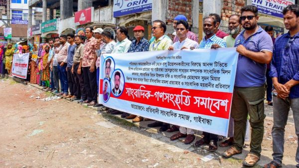 গাইবান্ধায় তিন সাংবাদিকের বিরুদ্ধে চাঁদাবাজির মামলার প্রতিবাদে মানববন্ধন কর্মসূচি পালন করা হয়েছে। সোমবার (৩ জুন) দুপুরে শহরের আসাদুজ্জামান স্কুল এন্ড কলেজের সামনে (ডিবি রোডে) দুই ঘণ্টা ব্যাপি এই মানবন্ধন কর্মসূচী