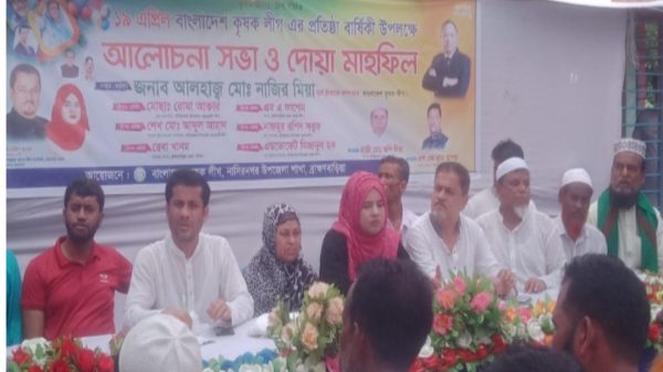 বাংলাদেশ কৃষকলীগ ব্রাহ্মণবাড়িয়া জেলার নাসিরনগর উপজেলা শাখার উদ্যোগে ১৯ এপ্রিল ২০২৪ রোজ শুক্রবার বেলা এগারো ঘটিকার সময় এন আর ভবনে এক দোয়া ও আলোচনা সভা অনুষ্টিত হয়। উপজেলা কৃষকলীগের সভাপতি