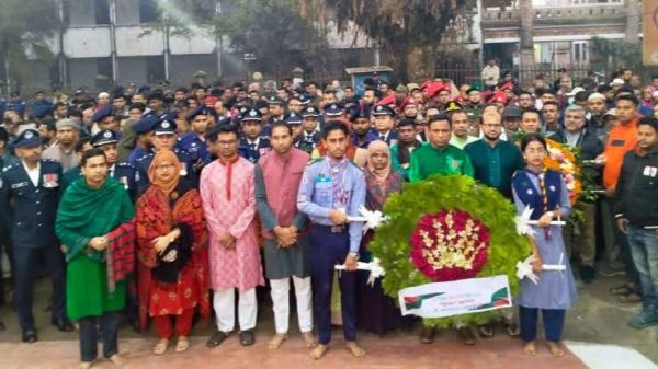 বিজয় দিবস উপলক্ষে দিনাজপুরের হাকিমপুর উপজেলার (হিলি) আনাচে-কানাচে ছিল উৎসবের আমেজ, তবে তা শোক ও শ্রদ্ধার চাদরে ঢাকা। প্রতিবারের মতো এবারও নানা বর্ণিল আয়োজনের মধ্য দিয়ে দিনটি পালন করেছে স্থানীয়