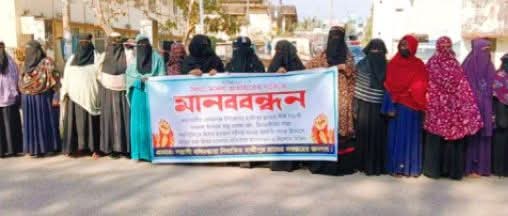চরফ্যাশনে পিপির উপর সন্ত্রাসী হামলার প্রতিবাদে মানববন্ধন